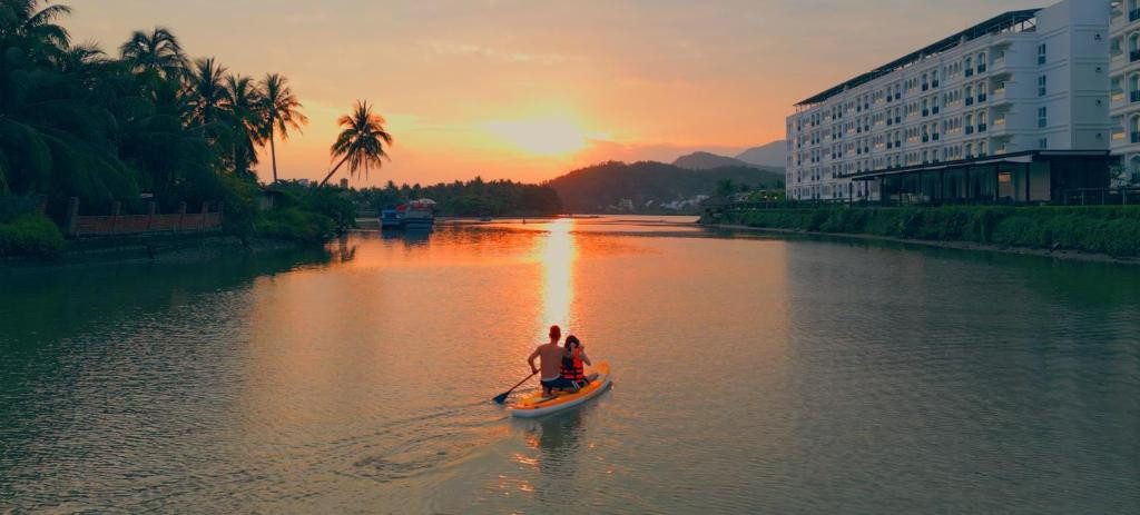 Deluxe River View — 28 кв. м, макс. 2 чел., в корпусе Champa Island Nha Trang, двуспальная кровать/ 2 односпальные кровати, софа, ванная комната с душевой и ванной