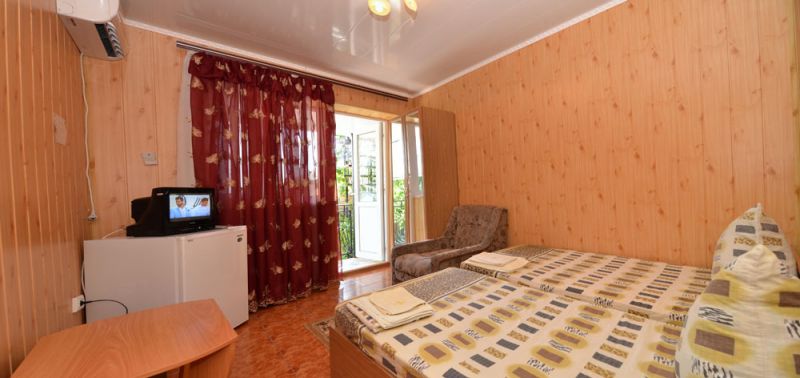4-местный 2-комнатный комфорт. Площадь номера - 25 кв.м. В каждом номере: все удобства (санузел с душевой кабиной), кровати (раздельные или двуспальные) в каждой комнате, мягкая мебель (кресла и диван), шкаф и тумбочки, журнальный столик, телевизор, холодильник, кондиционер
