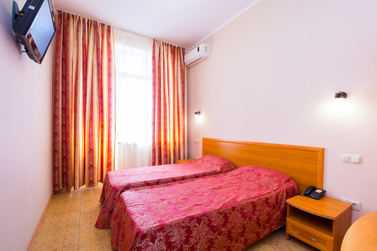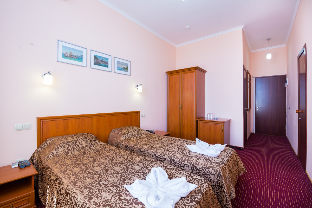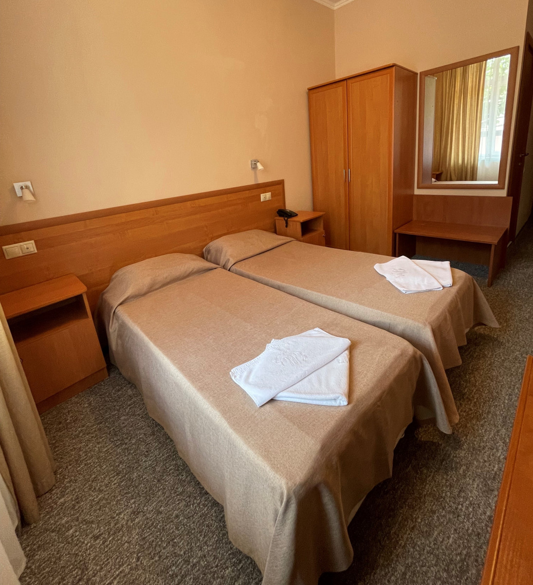 3-местн. Стандарт — 17-21 кв. м, односпальные кровати, сторона море/ сторона гор, номера на 1-4 этаже. Доп. место — еврораскладушка. 1-й этаж без балкона