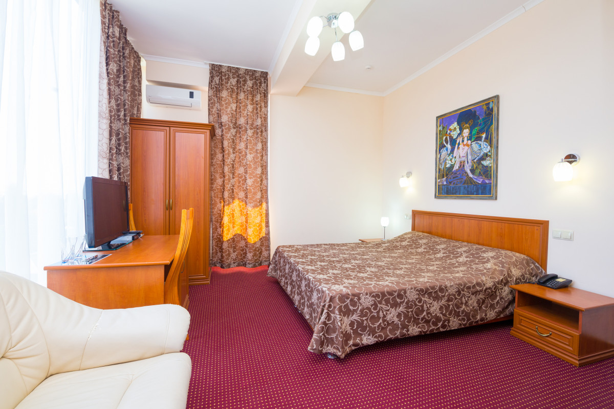 3-местн. ПК — 23 кв.м, двуспальная кровать, диван, сторона море, номера на 2-5 этаже. Море видно на 5-м этаже